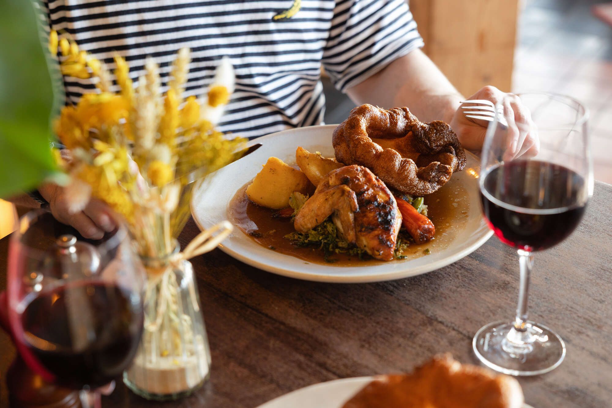 Then settle in for generous plates piled high with crisp roasties, seasonal veg, towering Yorkshires, and gravy that keeps on giving.